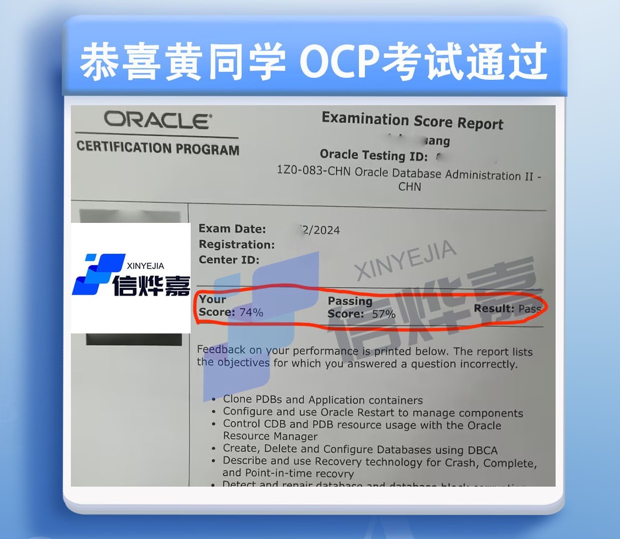 2024.3.22号战报-Oracle数据库OCP 19C-083考试高分通过